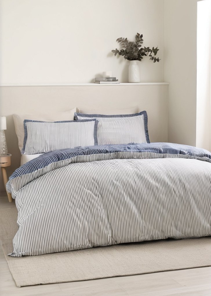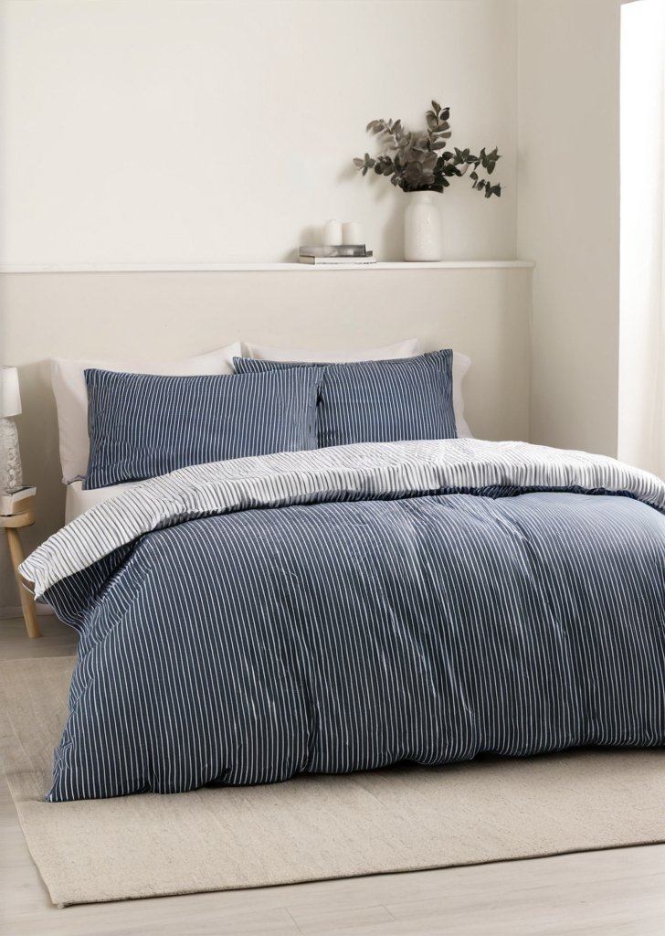 Zestaw dwustronnych poszewek na kołdrą Oxford w prążki, granatowy