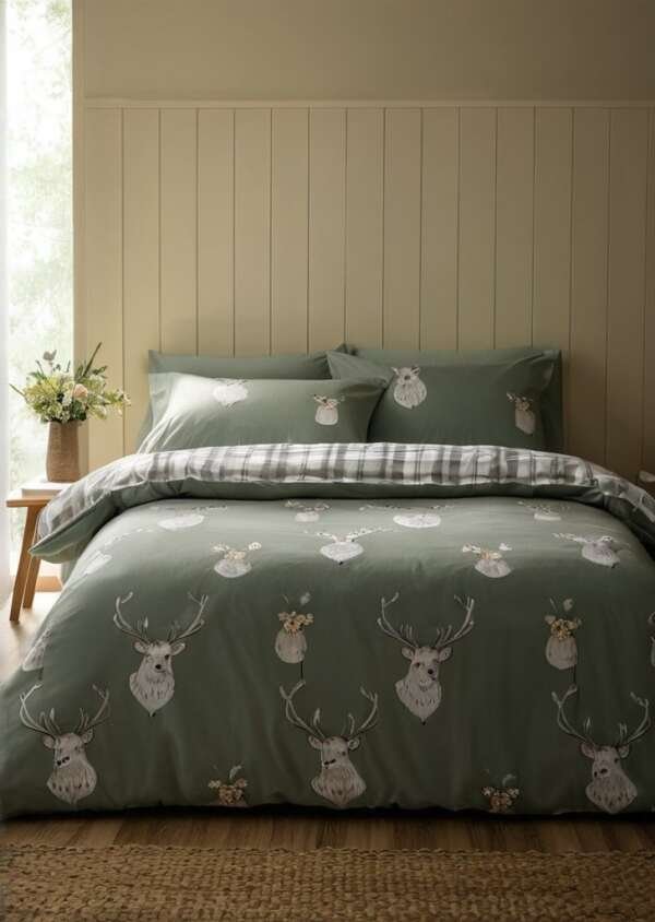 Wnieś piąkno natury do swojego domu dziąki temu efektownemu kompletowi pościeli Stag. Idealnie doda elegancji każdemu pomieszczeniu, ta pościel z pewnością zrobi wrażenie. Subtelna kratka na rewersie nadaje tej pościeli odrobiną wyrafinowania i dodatkową, w pełni dwustronną, wszechstronną stylizacją. Wykonane z łatwego w pielągnacji poliestru pochodzącego z recyklingu i miąkkiej bawełny, przeznaczone do codziennego użytku.