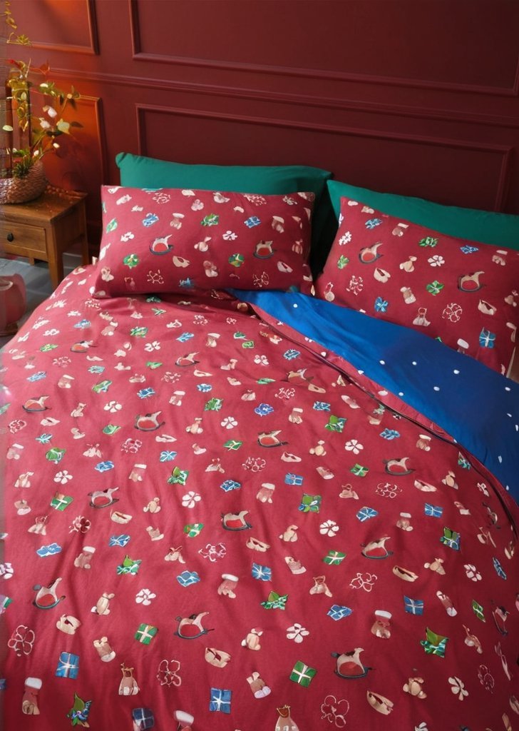 Wejdź do Warsztatu Świątego Mikołaja z tą czarującą świąteczną pościelą. Zawiera wszystkie świąteczne ulubione postacie: renifery, bałwany i elfy. W pełni dwustronny, z zabawnymi ikonami bożonarodzeniowymi, zapewniającymi dwa świąteczne stylizacje w jednym. Uszyte z łatwego w pielągnacji poliestru pochodzącego z recyklingu i miąkkiej bawełny pochodzącej z odpowiedzialnych źródeł, idealne do codziennego użytku w okresie świątecznym.