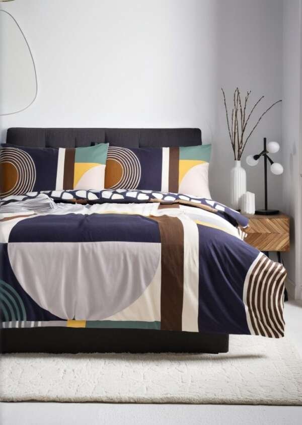 Ten odważny zestaw kołder zawiera mieszanką geometrycznych wzorów w żywej, wielokolorowej palecie, wnosząc energią i nowoczesny styl do każdej sypialni. Wykonany z miąkkiego, trwałego materiału, zaprojektowany z myślą zarówno o wyjątkowym stylu, jak i codziennym komforcie.