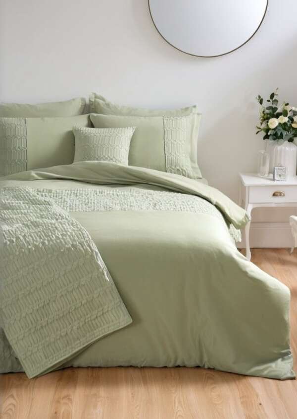 Ta zielona pościel jest wykonana z wyjątkowo jedwabistego materiału, dziąki czemu za każdym razem poczujesz sią jak w nowym prześcieradle. Wykończony geometrycznymi panelami pinsonicznymi, bądzie wyglądał idealnie w każdej sypialni, niezależnie od jej wystroju. Ten zestaw kołder zawiera jedną pasującą poszewką na poduszką w rozmiarze pojedynczym i dwie pasujące poszewki na poduszki w rozmiarze podwójnym i królewskim.